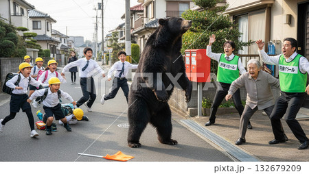 AI產生的圖像(熊襲擊上學途中的兒童 2)
