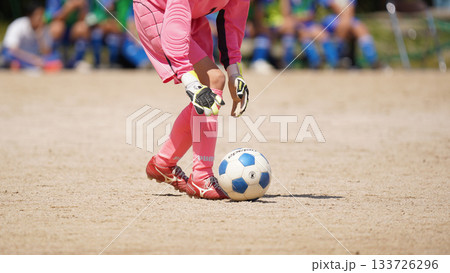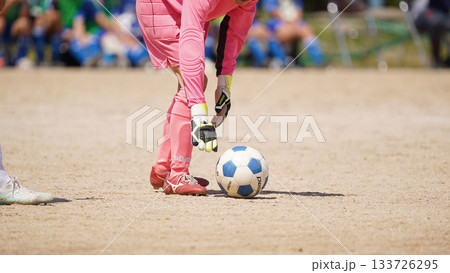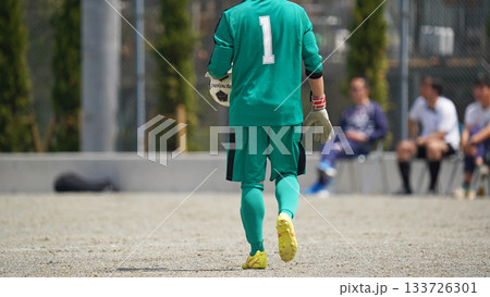 青年足球賽(守門員被擊敗後跪倒在地)