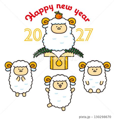 可愛的綿羊新年賀卡2027羊年綿羊人物插圖