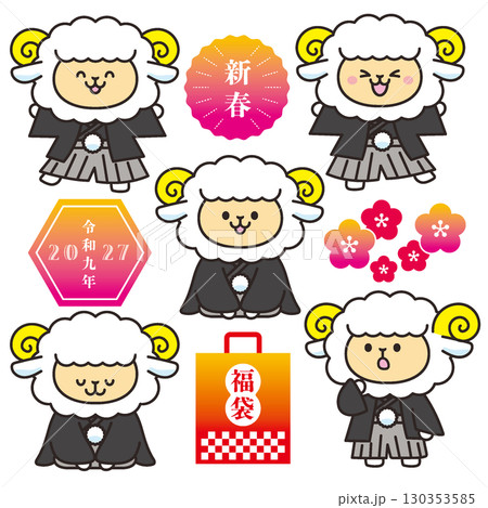 羊年,日本服裝,羊人物插圖,穿著袴的羊