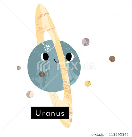 Uranus. Cute kawaii planet character with smiling face. Funny celestial body. Solar system. Astronomy for kids. Vector flat cartoon illustration