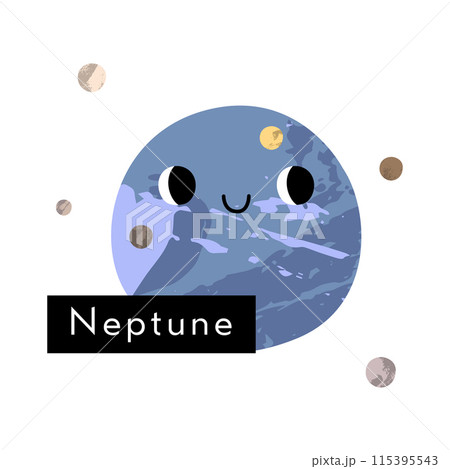 Neptune. Cute kawaii planet character with smiling face. Funny celestial body. Solar system. Astronomy for kids. Vector flat cartoon illustration