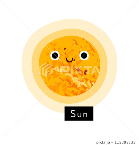 Sun, star of solar system. Cute kawaii sun character with smiling face. Funny celestial body. Astronomy for kids. Vector flat cartoon illustration