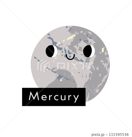 Mercury. Cute kawaii planet character with smiling face. Funny celestial body. Solar system. Astronomyfor kids. Vector flat cartoon illustration