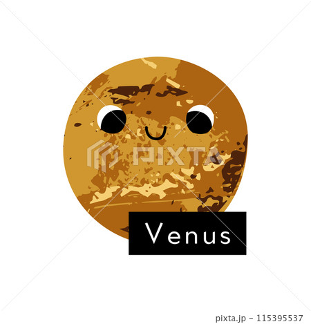 Venus. Cute kawaii planet character with smiling face. Funny celestial body. Solar system. Astronomy for kids. Vector flat cartoon illustration