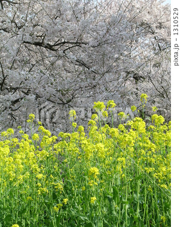 我在小金井公園拍了一張盛開的吉野櫻花和油菜花的照片。