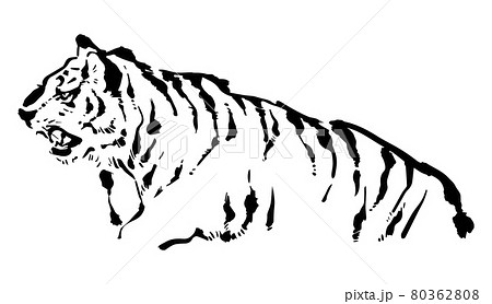 水墨風格老虎,日式黑白賀年片素材