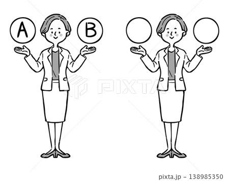 選項 A 和 B:職業女性,全身像,向量圖(單色)