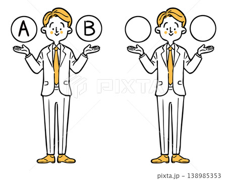 選項 A 和 B:年輕男性上班族 2,全身像,向量圖(橘色)