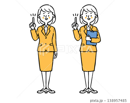 女白領講解重點 - 全身像 - 向量圖(橘色)