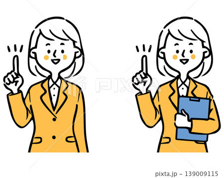 女白領講解重點 - 上半身 - 向量圖(橘色)