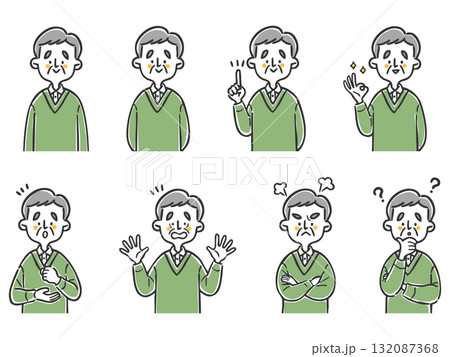 老人插圖集,包含各種臉部表情、上半身、向量圖