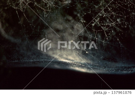 蜘蛛網在清晨的陽光下閃閃發光