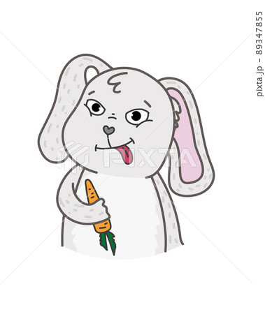 Vector illustration with gray grimacing bunny. Happy easter day