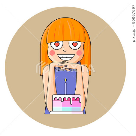 girl cooking colorful cake. vector illustration. Icon