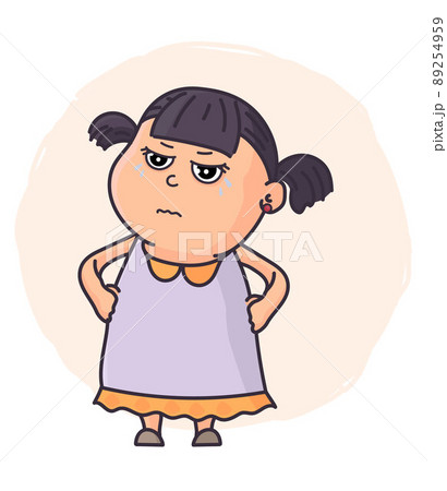 little grimacing girl vector illustration. Emotional expression