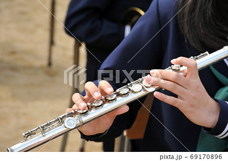 吹笛子的年輕女子的柔軟手