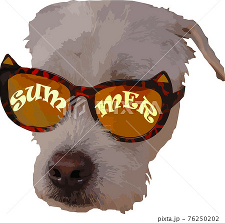 Digital illustration of a dog wearing cat sunglasses showing concept of fun, summer and fashion