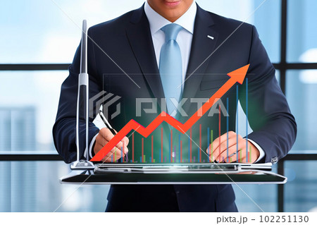 A businessman plots the growth of statistics. The concept of a business career and achievements. With Generative AI technology by lexica.art