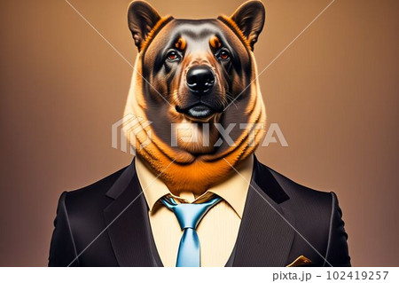 Portrait of a funny bear in a business suit and tie, symbolizes a serious boss, an official. 3D-rendering