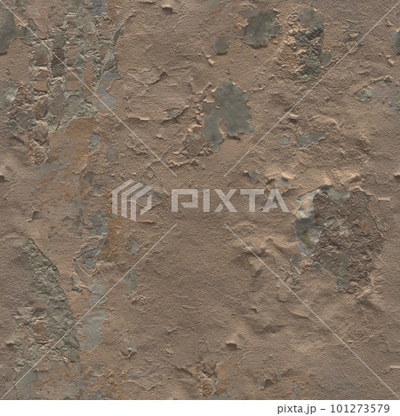 Crackling paint on the plastered wall. The background of an old wall with peeling dirty paint. 3D-rendering