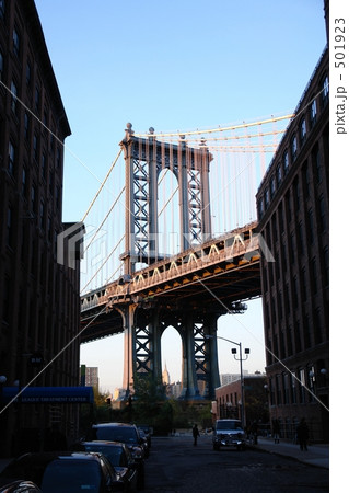 曼哈頓大橋我想從倉庫小鎮〜看似在電影的一個場景中的景觀