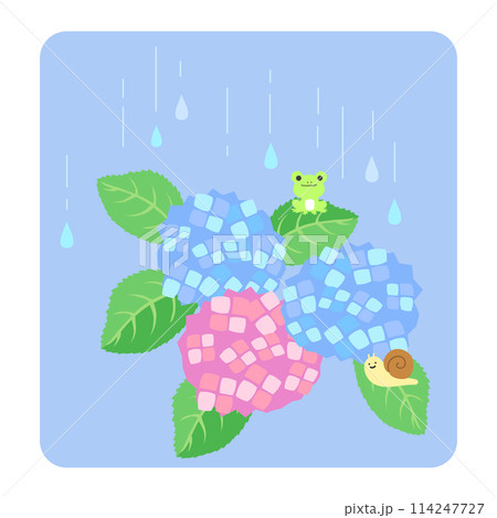 繡球花、青蛙和蝸牛的插圖