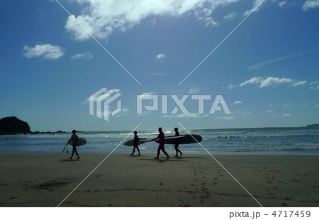 衝浪者沿著海灘散步