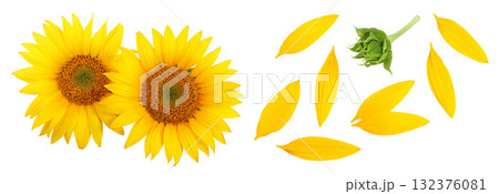 Sunflower isolated on a white background. Top view. Flat lay