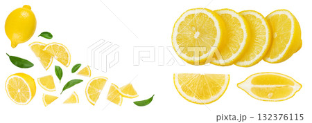 Ripe lemon with half isolated on white background. Top view with copy space for your text. Flat lay