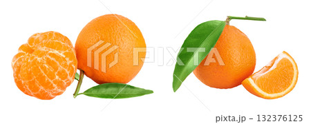 Tangerine or clementine with green leaf isolated on white background with full depth of field.
