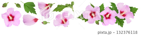 Pink hibiscus flower isolated on white background. Top view with copy space for your text. Flat lay.