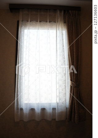 飯店房間窗戶上漂亮的蕾絲窗簾