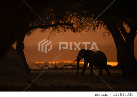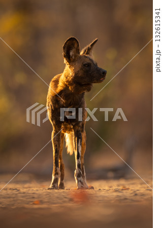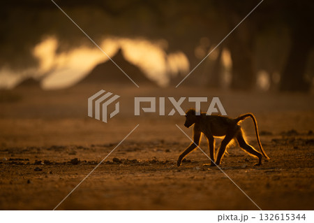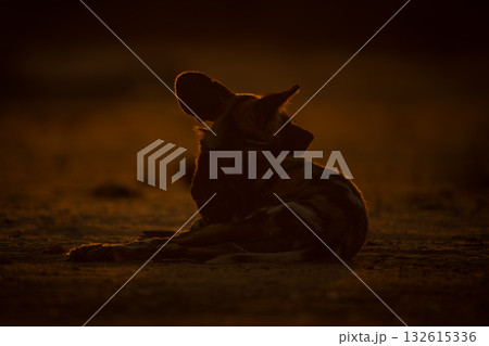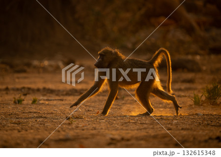 Backlit white-fronted bee-eater crouches on diagonal branch