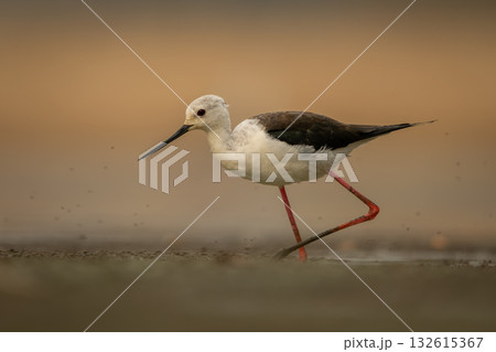 Backlit white-fronted bee-eater crouching on diagonal branch