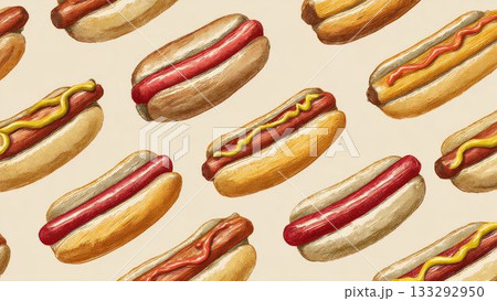 繪畫風格熱狗圖案背景