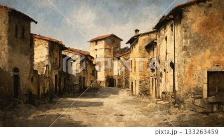 以油畫風格繪製的中世紀歐洲城市景觀