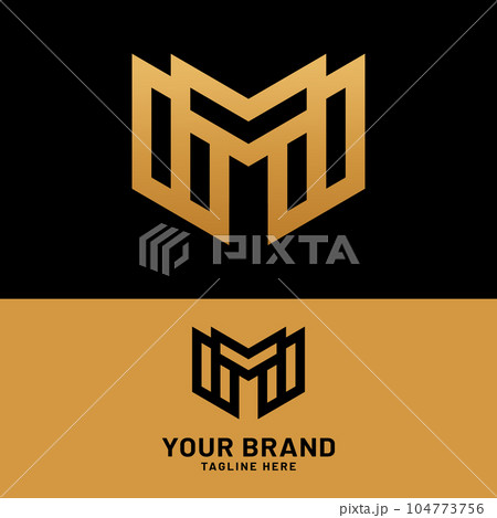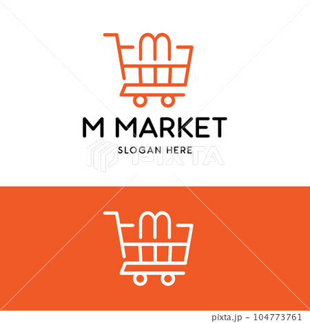 Letter Initial M Shopping Cart Trolley in Line Logo