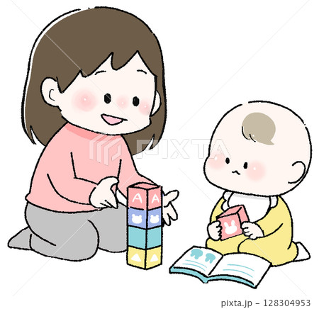 父親和寶寶玩積木的插圖 育兒 Ikumen 育兒爸爸
