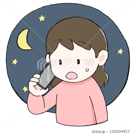 一位母親打電話給夜間診所的插圖 夜間打電話的急診婦女