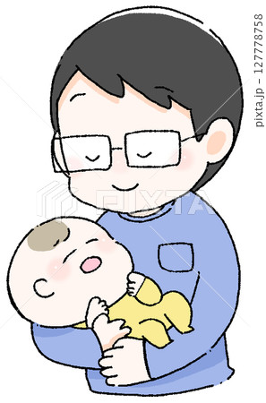 父親哄嬰兒入睡的插畫 父親抱著嬰兒