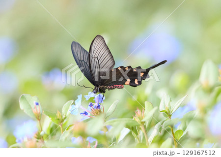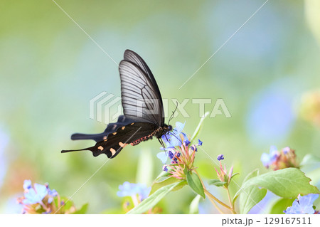 藍色花朵和麝香燕尾蝶