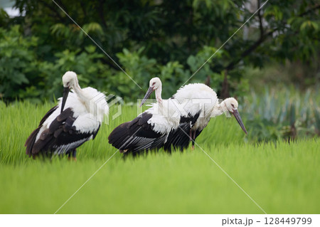 稻田裡的三隻鸛