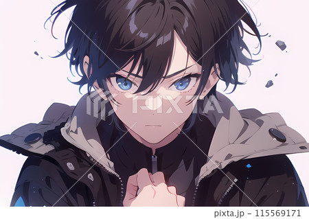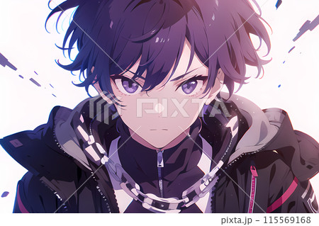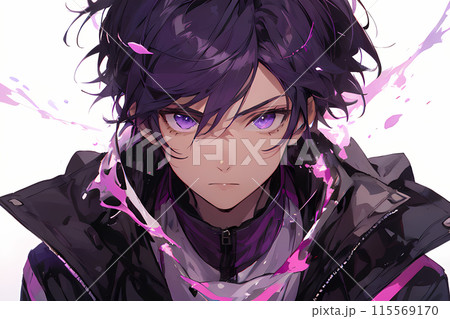 一個黑髮、紫眼睛的男人看著我(AI 生成的圖像)