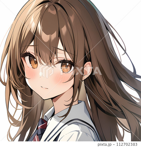 一個穿著日本製服的棕髮女孩對我們微笑(AI 生成的圖像)
