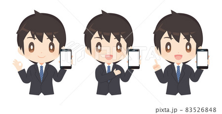 男性插圖套裝,帶智能手機