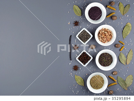 Big set of spices and herbs.