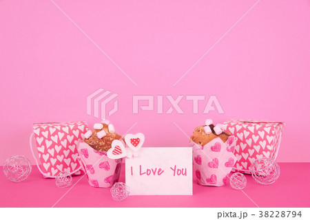 Muffins in colorful paper baking cup with red