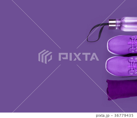 Creative flat lay of sport and fitness equipments.
