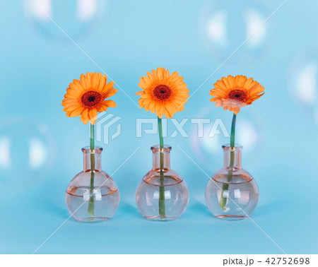 Orange daisy flower in a vase on trendy background.